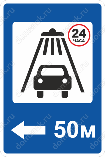 Главное отличие рекламной таблички «Автомойка» от других – выделяющийся красный круг с цифрой 24. Такой знак сразу информирует о времени работы автомойки и при этом указывает куда сворачивать. Заказывайте знак, чтобы увеличить поток клиентов.