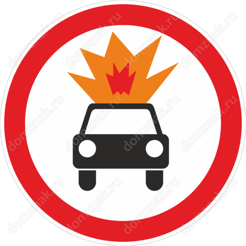 Знак «Движение транспортных средств с взрывчатыми и легковоспламеняющимися веществами запрещено»