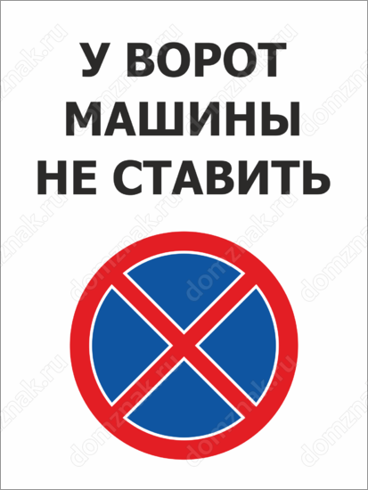 Вы можете заказать Знак «У ворот машины не ставить» по индивидуальному дизайну или воспользоваться готовым вариантом от нашей компании.