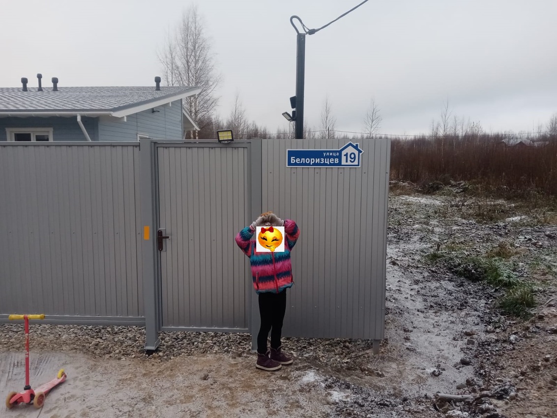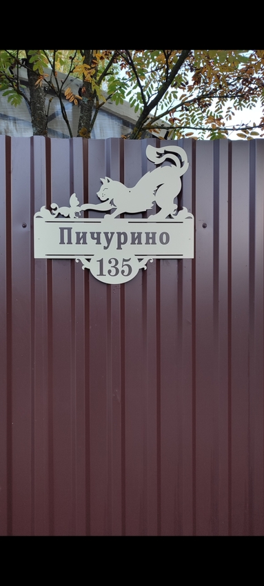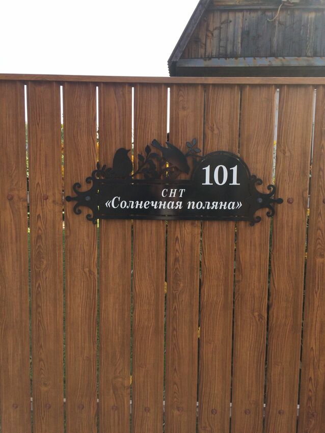 Знак очень лаконично смотрится на заборе. Но, в то же время, надпись яркая и читаемая, красотища! Рады, что табличка Вам понравилась.