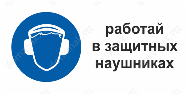 Табличка Работать в защитных наушниках изготавливается в нескольких вариантах: