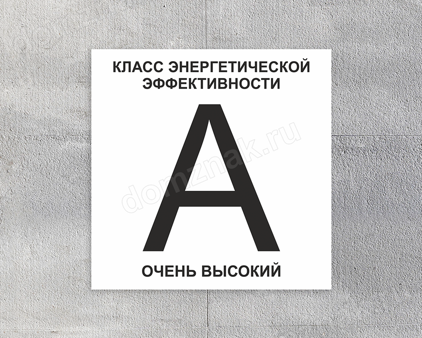 Табличка энергоэффективности здания (А - очень высокий) изготавливается в нескольких вариантах: