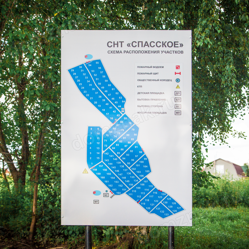 Табличка изготавливается на основе из пластика ПВХ (толщина 4 мм), оцинкованного металла (толщина 0,8 мм) или алюминиевого композита (толщина 3 мм). Подходит для установки на плоских поверхностях, таких как стена дома или забор.