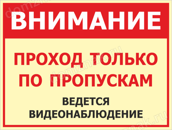 Табличка Внимание, проход только по пропускам