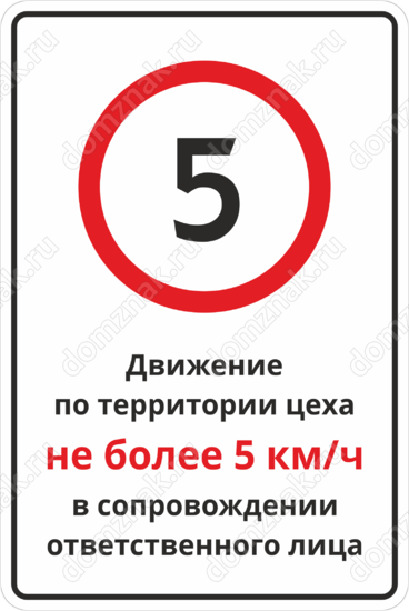 Вы можете заказать Знак «Движение на территории не более 5 км/ч» по индивидуальному дизайну или воспользоваться готовым вариантом от нашей компании.