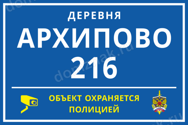 Табличка с адресом, объект охраняется полицией