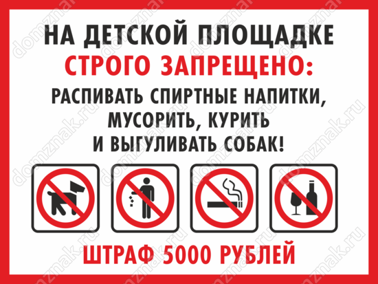 Табличка «На детской площадке запрещено» изготавливается на основе из пластика ПВХ или оцинкованного металла.