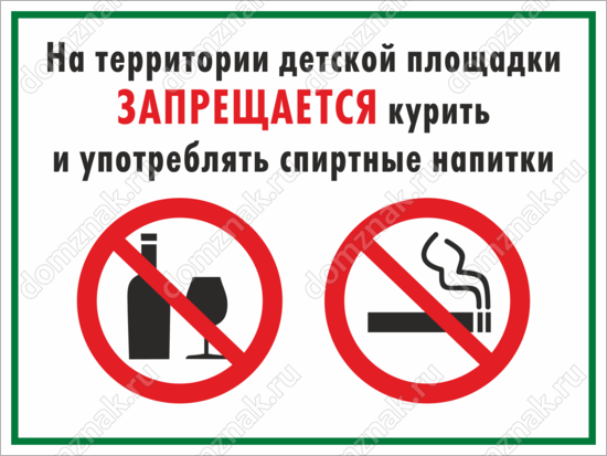 Табличка «На территории детской площадки запрещается курить и употреблять спиртные напитки»