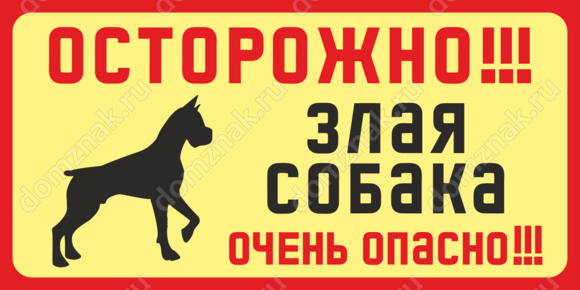 Табличка «Злая собака, очень опасно» изготавливается на основе из пластика ПВХ или оцинкованного металла.