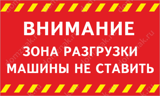 Яркая информационная табличка «Зона разгрузки, машины не ставить» оповестит окружающих о месторасположении зоны, где разгружается товар. Она предупредит водителей о том, что эта территория не предназначена для стоянки их автомобилей. Насыщенный красный цвет таблички является предупреждающим цветом. Белая надпись большими буквами не останется незамеченной.