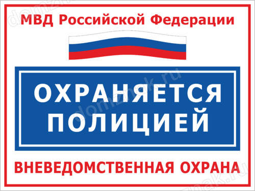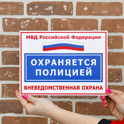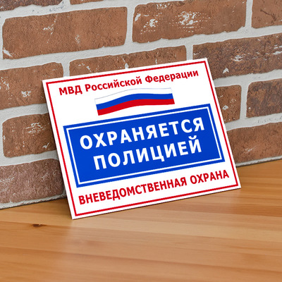 Табличка «Охраняется полицией, МВД России» изготавливается на основе из пластика ПВХ или оцинкованного металла.