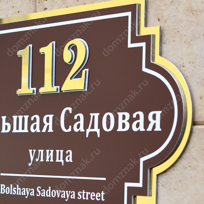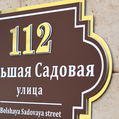 Знак изготавливается из материалов премиум качества, что гарантирует великолепные декоративные свойства, а также исключительную стойкость к атмосферным воздействиям окружающей среды.
