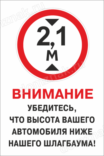 Табличка «Высота автомобиля ниже шлагбаума» изготавливается на основе из пластика ПВХ или оцинкованного металла.