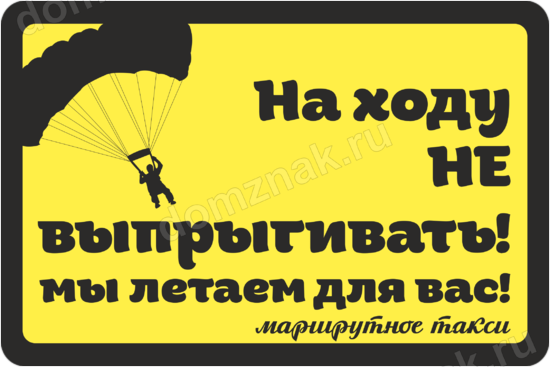 Специально для маршрутных такси мы разработали наклейку «На ходу не выпрыгивать». Через смех и юмор легче донести нужную информацию: картинка с парашютистом, забавный текст с юмористической саморекламой, ярко-желтый фон – такая наклейка привлечет внимание пассажиров, легко и ненавязчиво напоминая им о правилах безопасного поведения в маршрутке.