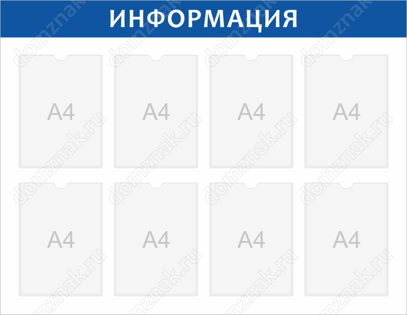 Практичный стенд на целых восемь ячеек может продемонстрировать максимум полезной информации вашим гостям или клиентам. Он изготовлен из прочного пластика, который прослужит долго. А восемь прозрачных карманов размера А4 с вертикальной ориентацией позволят с комфортом ознакомиться с информацией.
