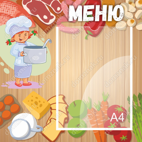 Подавляющее большинство родителей интересуются питанием детей в саду, ведь среди продуктов могут быть аллергены. Так почему бы не оформить ежедневное меню на красивом стенде? Родители будут благодарны размещенному стенду меню в столовой детского садика, да и ответственному лицу – воспитателю, медсестре или диетсестре.