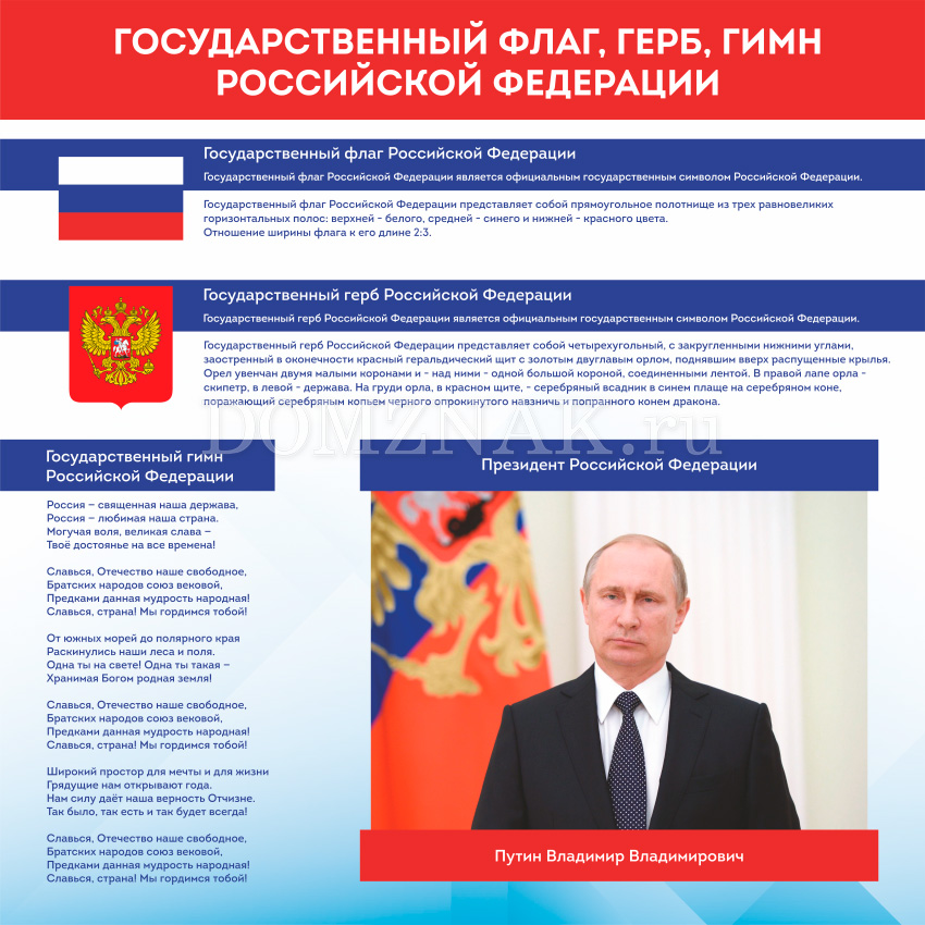 Стенд Государственный флаг, герб, гимн Российской Федерации