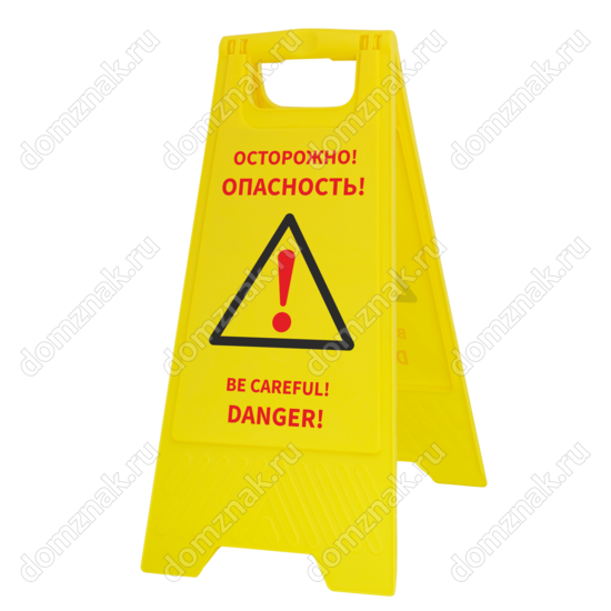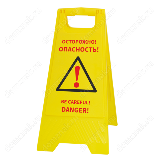 Напольная табличка «Осторожно, опасность» поможет предупредить окружающих об опасности на определенном участке помещения и позволит уменьшить вероятность травмирования. Может быть установлена в офисных, торговых, промышленных помещениях, а также в местах большого скопления людей. Табличка сделана из прочного пластика, имеет устойчивую конструкцию и небольшие размеры. Надписи на ней яркие и контрастные, выполнены на двух языках: английском и русском.