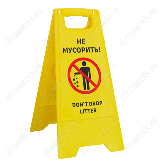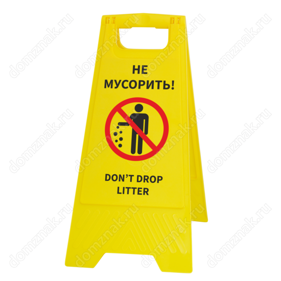 Сохраните чистоту в помещениях офиса, завода или любого общественного заведения, а также на прилегающих к нему территориях. Установите небольшую, но очень заметную табличку на пол «Не мусорить». Она удобна, устойчива и надежна. Занимает мало места при хранении. Имеет удобную ручку для перемещения с места на место. На табличку нанесены надписи на русском и английском языках, что дает возможность использовать ее в респектабельных заведениях, принимающих иностранцев.