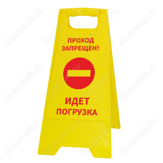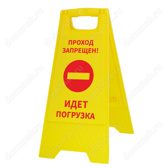 Чтобы случайные прохожие не мешали процессу погрузки товара и не подвергали себя опасности, не забудьте установить табличку на пол «Проход запрещён, идёт погрузка». Она имеет яркий желтый цвет с контрастирующими красными надписями и привлекающим внимание предупредительным знаком. Сама табличка легко устанавливается на любой ровной поверхности, имеет небольшой вес и компактность. Может быть перемещена за ручку в любую часть помещения.