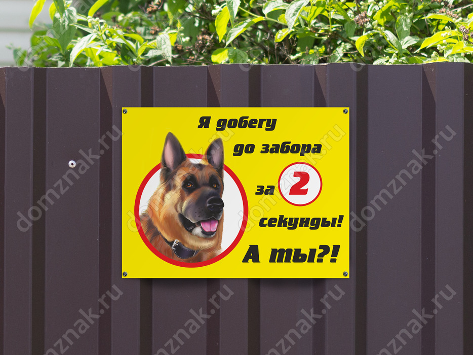 Оповестите окружающих о том, что проникать через забор без предварительного согласования визита с владельцем не стоит. Табличка «Добегу до забора за 2 секунды, а ты» донесет информацию о надежном и весьма не доброжелательном защитнике территории, который способен добраться до забора всего за две секунды. Она в разы уменьшит вероятность посягательства воришек на территорию.