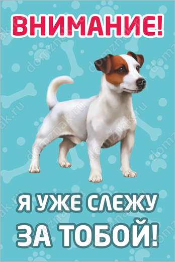 Уменьшите вероятность проникновения на вашу территорию злоумышленников. Повесьте на ограждение в зоне доступности для окружающих эту табличку «Я слежу за тобой». Она предупредит воришку или хулигана о том, что охраняющая объект собака уже следит за ним и готова в любой момент защитить доверенное имущество. На табличке изображена порода джек-рассел-терьер.