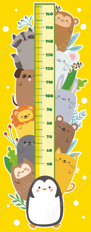 Повесьте ростомер детский на стену в комнате ваших детей, и подарите им отличную возможность измерять свой рост без посторонней помощи. А вместе с веселыми зверятами, которые изображены на этом ростомере, узнавать прогресс роста будет еще интереснее! Такое изделие станет отличным украшением интерьера и убережет обои или откосы от зарубок и пометок.