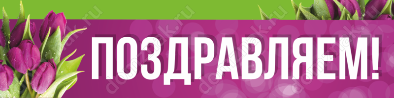 Украсьте помещение, в котором будет проходить праздник, красивым баннером «Поздравляем». Он приятно удивит виновника торжества и подарит всем присутствующим праздничное настроение. Будет актуален на День Рождения, юбилей, 8 марта и другие мероприятия, связанные с победой в состязаниях и конкурсах. Баннер украшен букетом тюльпанов и крупной надписью-поздравлением.