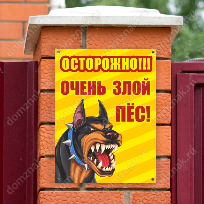 Табличка «Очень злой пес» изготавливается на основе из пластика ПВХ или оцинкованного металла.