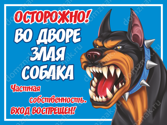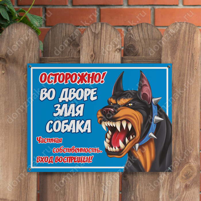 Табличка «Злая собака, частная собственность» изготавливается на основе из пластика ПВХ или оцинкованного металла.