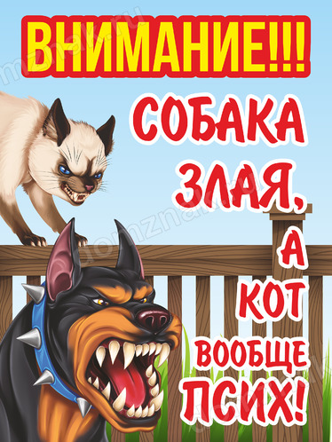 Табличка информационная собака злая кот псих