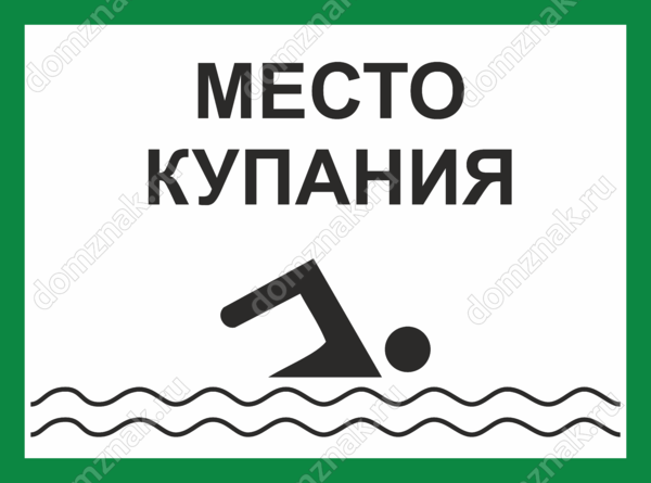 Табличка «Место для купания» изготавливается на основе из пластика ПВХ или оцинкованного металла.