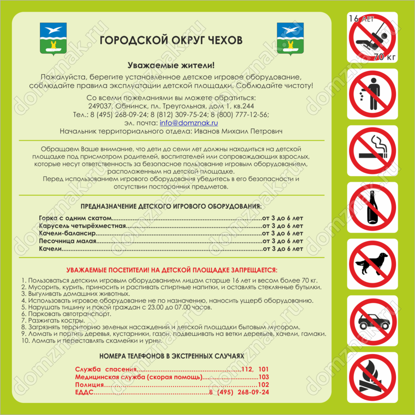 Табличка правила детской площадки