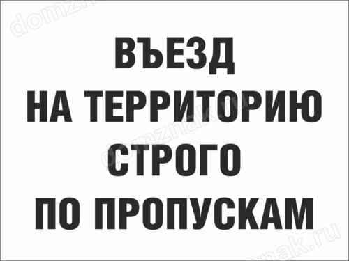 Знак «Въезд на территорию строго по пропускам» изготавливается на основе из пластика ПВХ или оцинкованного металла.
