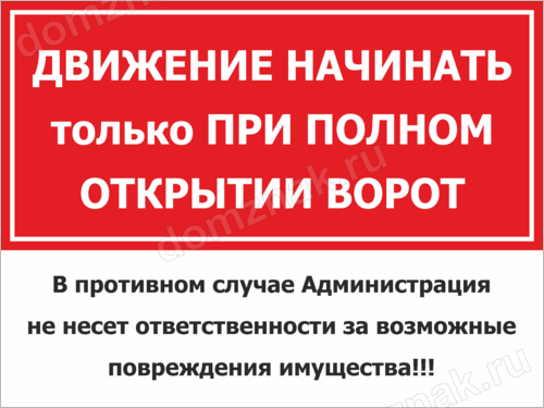 Табличка Движение начинать только при полном открытии ворот