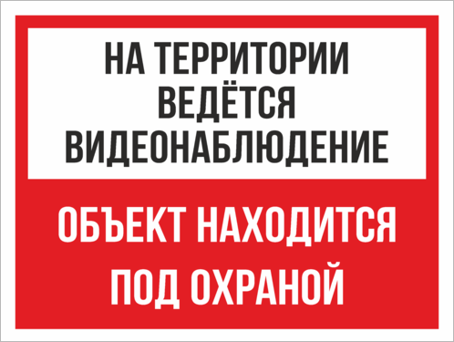 Табличка «На территории видеонаблюдение, объект под охраной» изготавливается на основе из пластика ПВХ или оцинкованного металла.