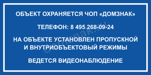 Табличка «Объект охраняется ЧОП» изготавливается на основе из пластика ПВХ или оцинкованного металла.