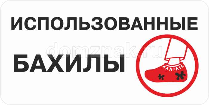 Табличка «Использованные бахилы» изготавливается в нескольких вариантах: