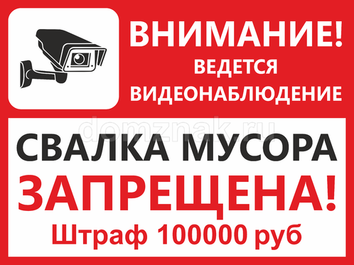 Табличка «Свалка мусора запрещена, ведется видеонаблюдение» изготавливается на основе из пластика ПВХ или оцинкованного металла.