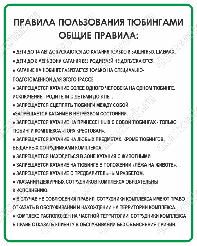 Табличка «Правила пользования тюбингом» изготавливается на основе из пластика ПВХ или оцинкованного металла.