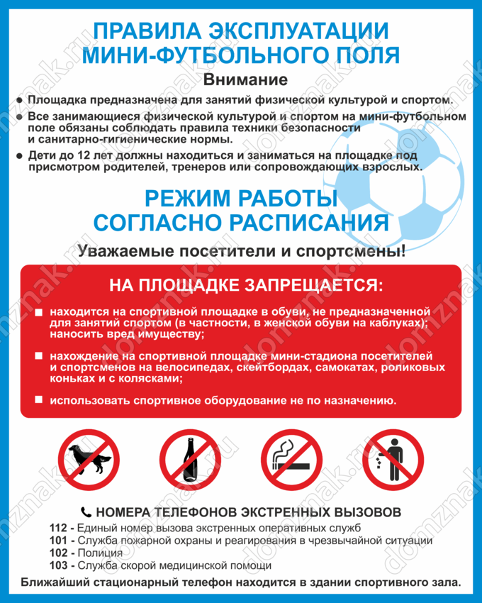 Табличка «Правила эксплуатации мини-футбольного поля»