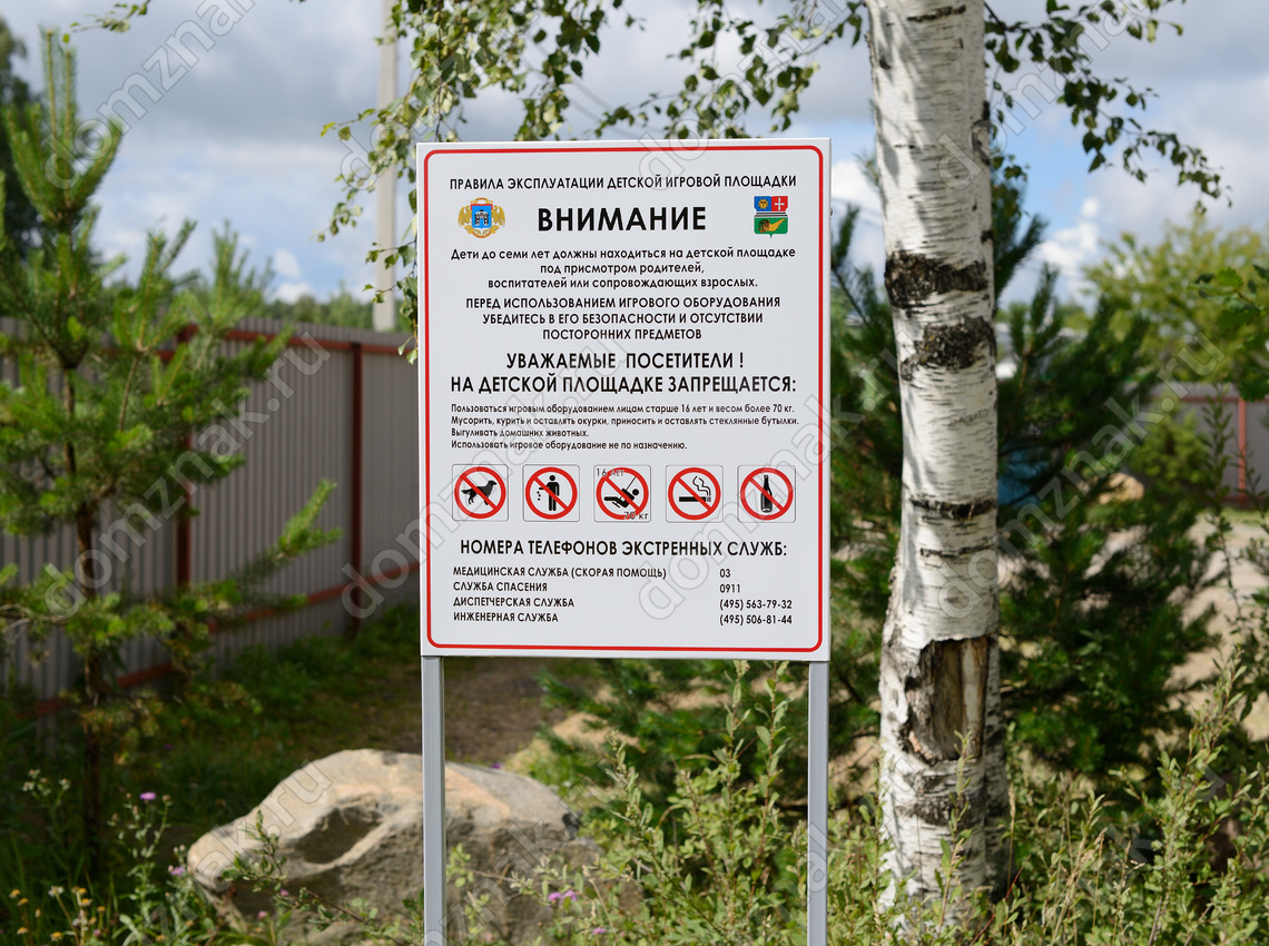Табличка из оцинковки поставляется в сборе со стойкой (опорой), изготовленной из окрашенной профильной трубы. Размер трубы – 25x25 или 30x30 мм. Стандартная высота стойки – 2,3 метра. По желанию заказчика мы изготавливаем стойки и таблички произвольного размера. При определении высоты стойки необходимо учитывать глубину погружения конструкции в землю (бетон).