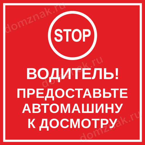 Табличка «Водитель, предоставьте машину к досмотру» изготавливается на основе из пластика ПВХ или оцинкованного металла.