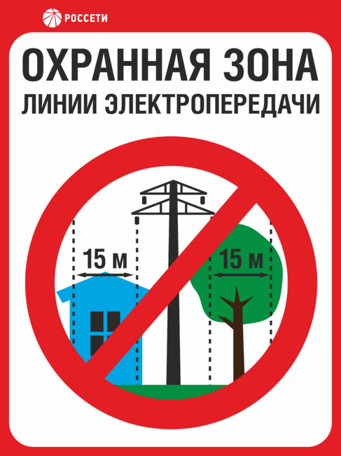 Табличка «Охранная зона ЛЭП 35 кВ – 15 метров, Россети»