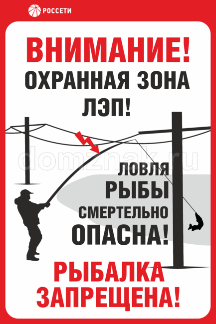 Табличка Охранная зона ЛЭП Ловля рыбы смертельно опасна