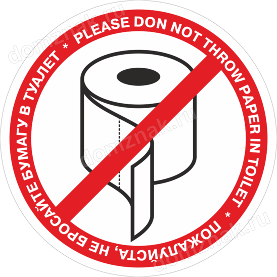 Наклейка «Пожалуйста, не бросайте бумагу в туалет» изготавливается из матовой виниловой плёнки. Толщина наклейки 160 мкм, что позволяет легко наклеить ее на любую ровную поверхность без образования пузырей воздуха и складок.