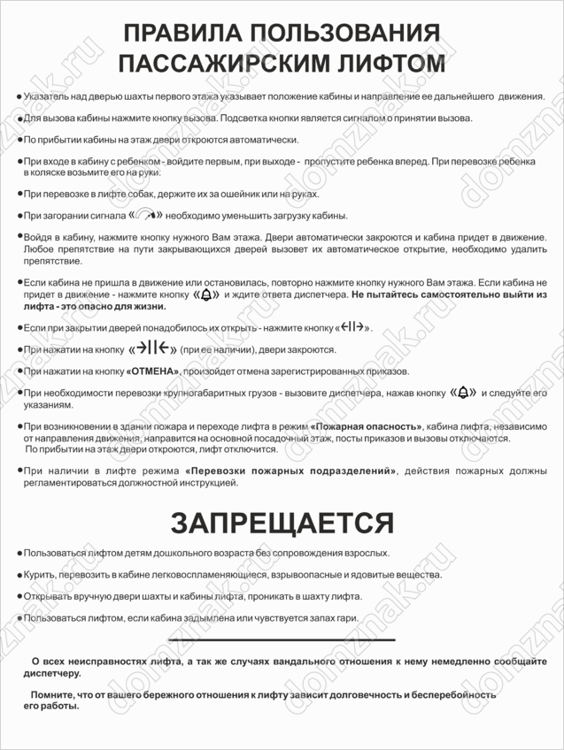 Табличка «Правила пользования лифтом» изготавливается на основе из пластика ПВХ или оцинкованного металла.
