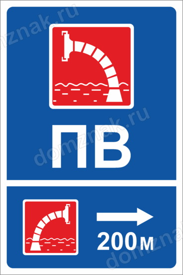 Знак Пожарный водоем направо 200м