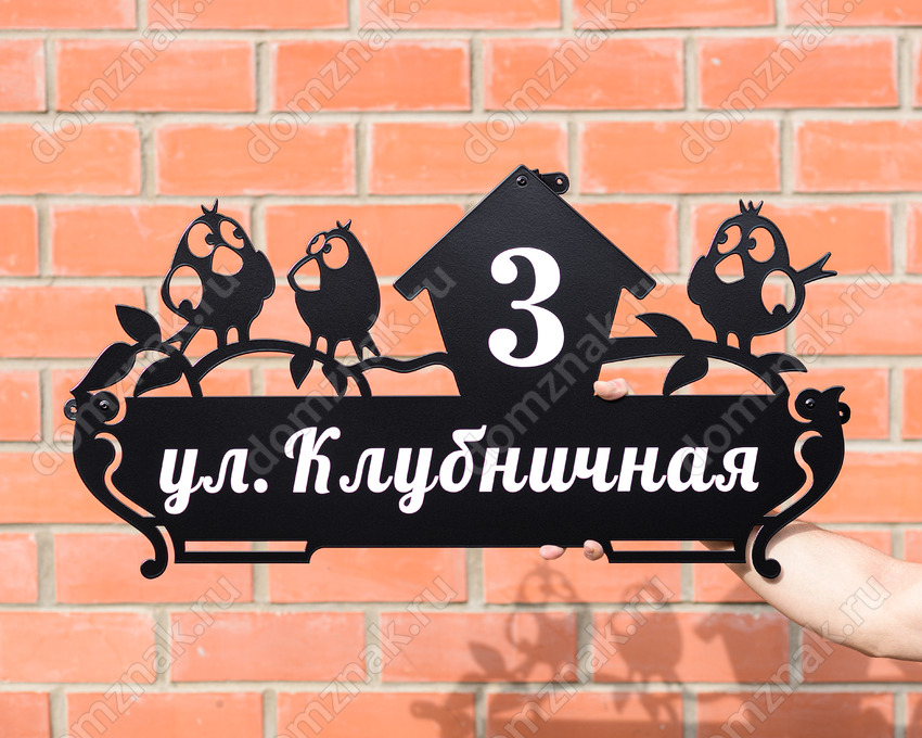 Адресная табличка из стали c забавными птичками