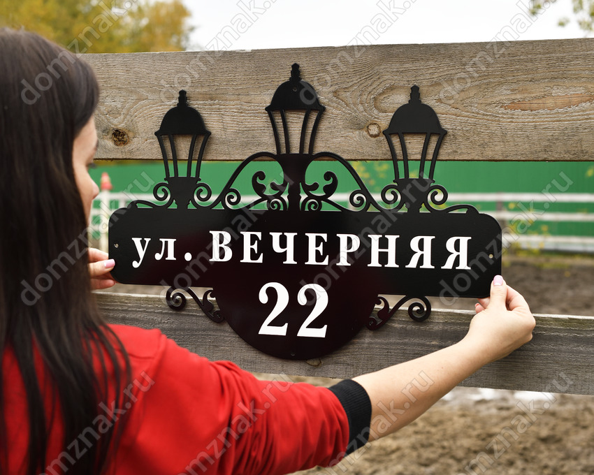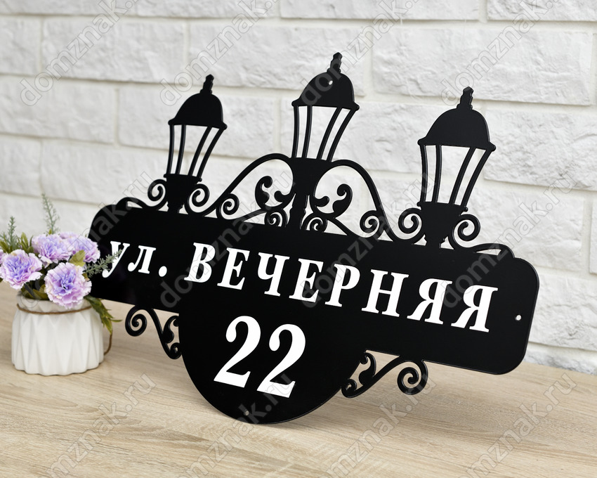 Адресный знак из стали с фонарями